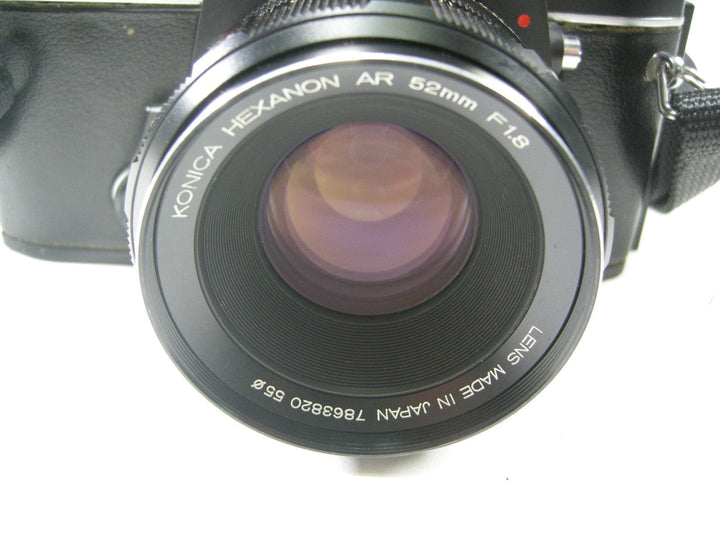 Konica TC Auto Reflex 35mm SLR film camera with a Hexanon AR 52mm f1.8 lens has been tested and is in good working condition, meter does not work and camera shows...