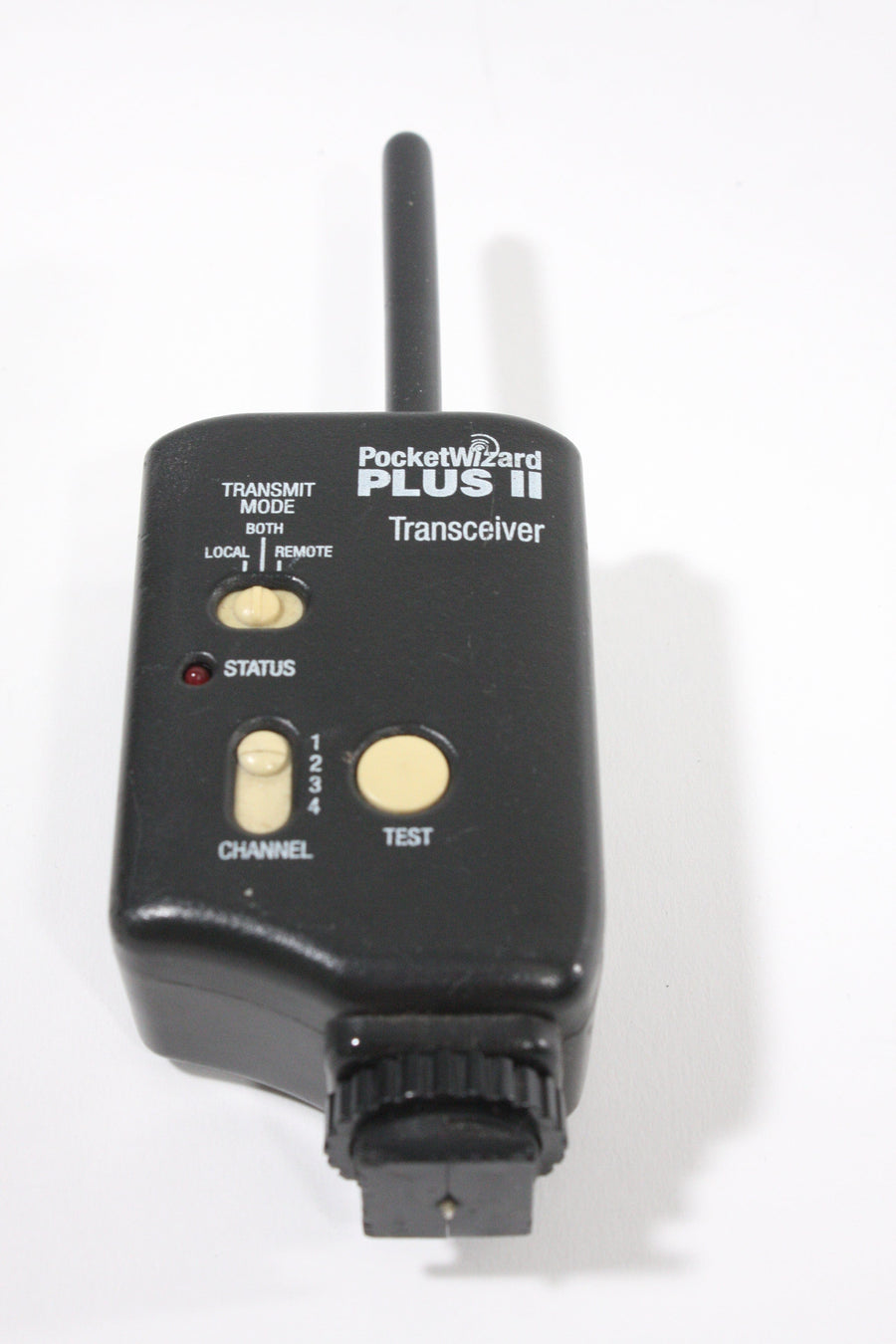 This is a PocketWizard Plus II Tranceiver. This transceiver is in excellent condition and shows little to no signs of use. Requires two AA batteries. WE SHIP IN 1 BUSINESS DAY...