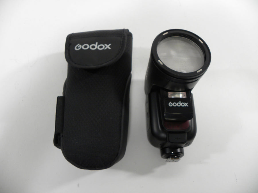 This is a Godox V1f Shoe Mount Flash for Fuji. This transmitter has been tested and is in excellent working order and condition. There are normal signs of wear. The...