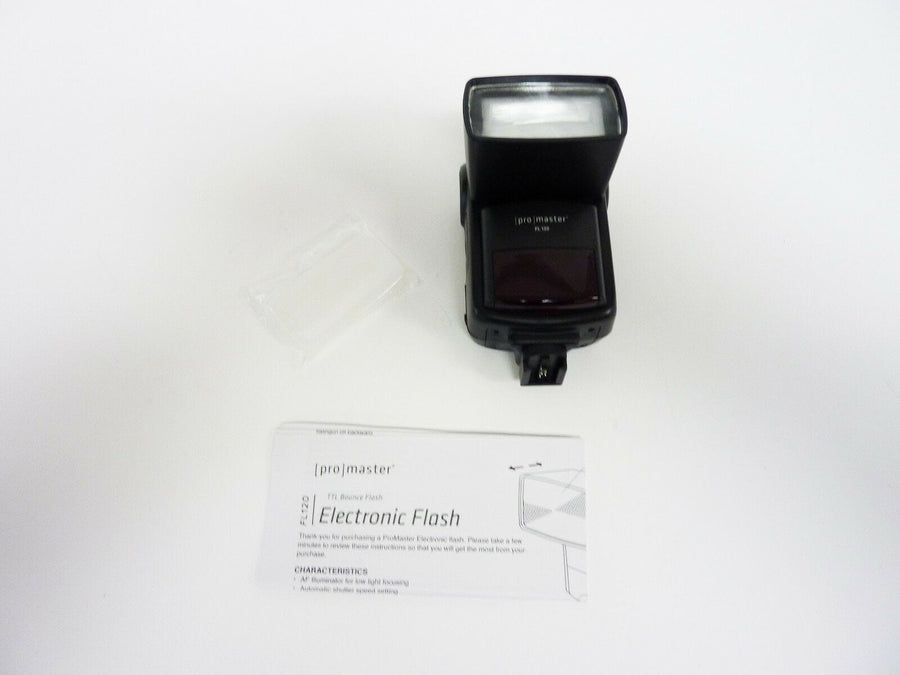 POWERFUL AND VERSATILE, the ProMaster FL120 combines the simplicity of fully automatic TTL operation with the creative capability of a bounce flash. The manual zoom aids in focusing the flash...