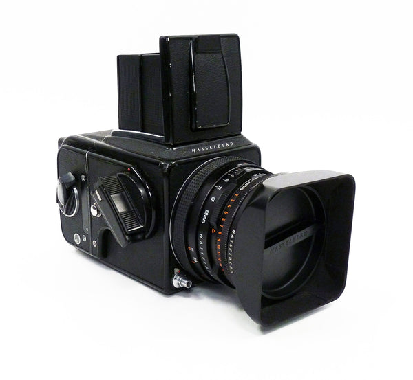 Hasselblad 500C/M Black with Planar 80mm f2.8 CF Lens-A12 Back and Chimney Finder