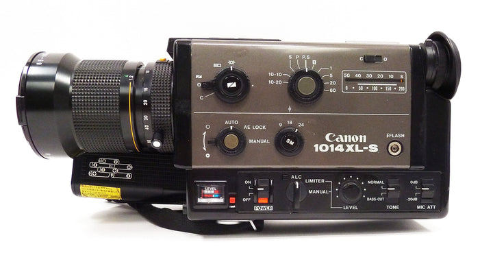 A beautiful Canon 1014 XL-S Canosound Super 8 Movie Camera in excellent condition with only minor scuffs from normal use. The motor runs smoothly and quietly. The camera has been tested with a blank film cartridge and the transport is working well. The power zoom works as does the manual zoom. Split image focus is clear and bright.