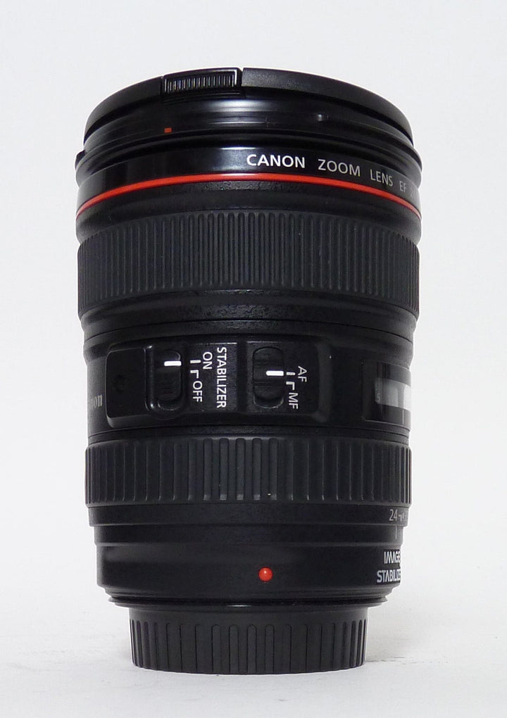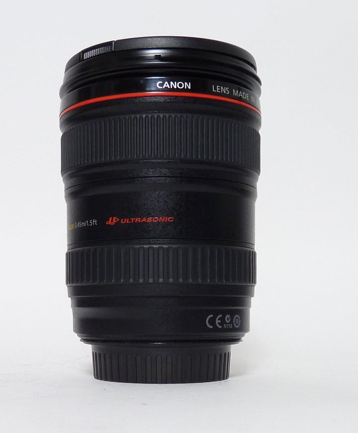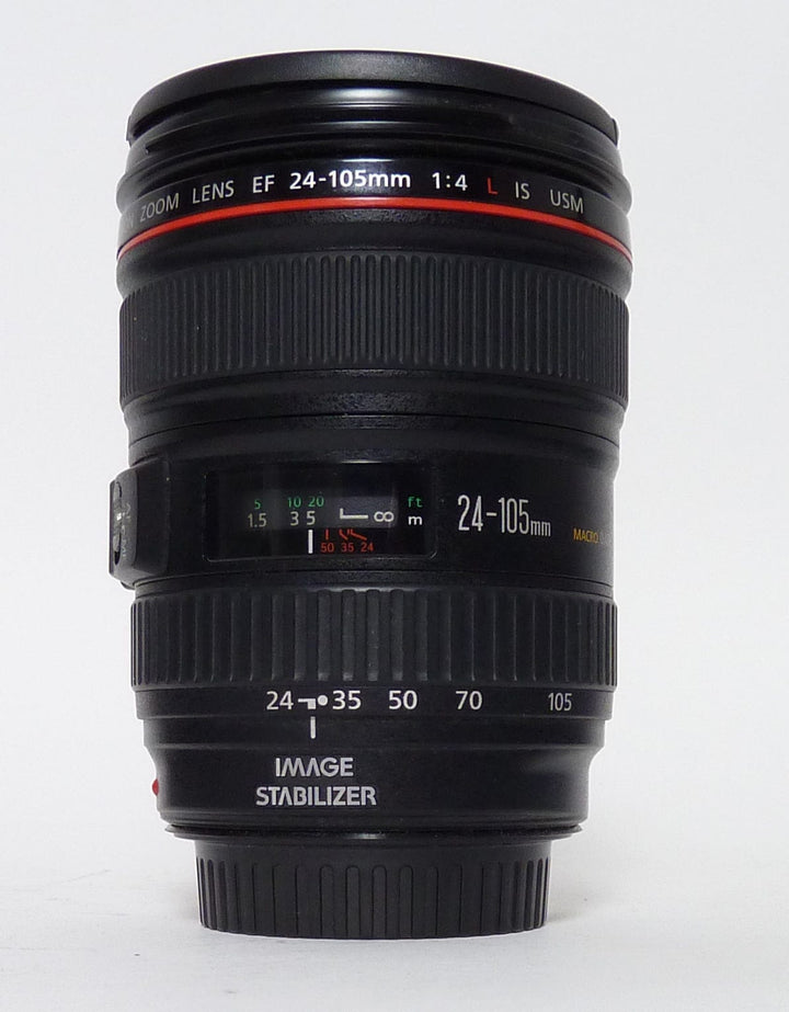 Canon EF 24-105mm F4L Lens in excellent condition. Optics are clean of any scratches, fungus, haze, or separation. The focus and zoom are smooth and the aperture stops down correctly. Includes front and...