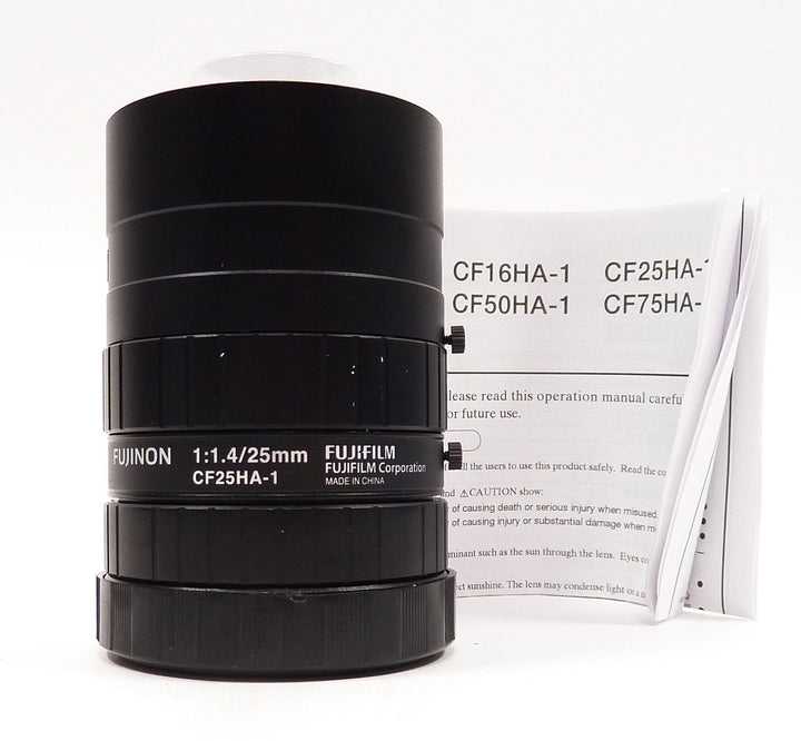 Fujinon CF25HA-1 25mm f1.4 C Mount TV Lens like new in the box. This lens was probably never used and has a smooth aperture and completely clean glass. Includes manual, caps and original box.