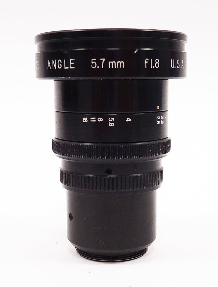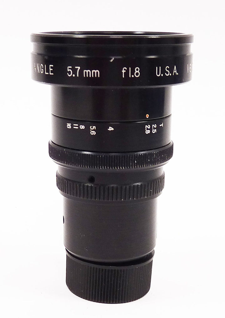 Super Cinetar 5.7mm f1.8 C Mount Lens in excellent condition. Aperture is smooth and the glass is clean. Only minor cosmetic signs of normal use. Comes with front and rear caps....