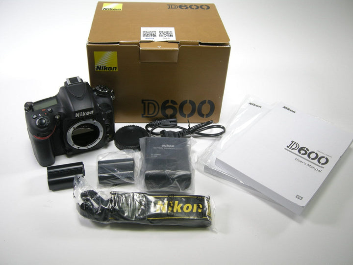 Nikon D600 24.3mp Digital SLR camera Body only with a shutter ct. of 3,780 has been tested and is in Excellent Working Condition, comes in its original box with Manual's, strap, 2 batteries, charger, and body cap.