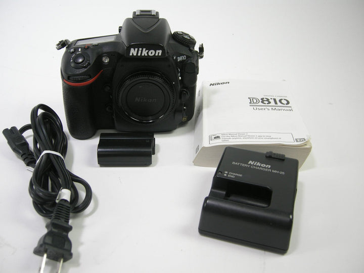 Appareil photo reflex numérique Nikon D810 36,3 MP uniquement avec obturateur. # 148 874 a été testé et est en excellent état de fonctionnement, est livré avec une batterie, un chargeur, un capuchon de carrosserie et un manuel.