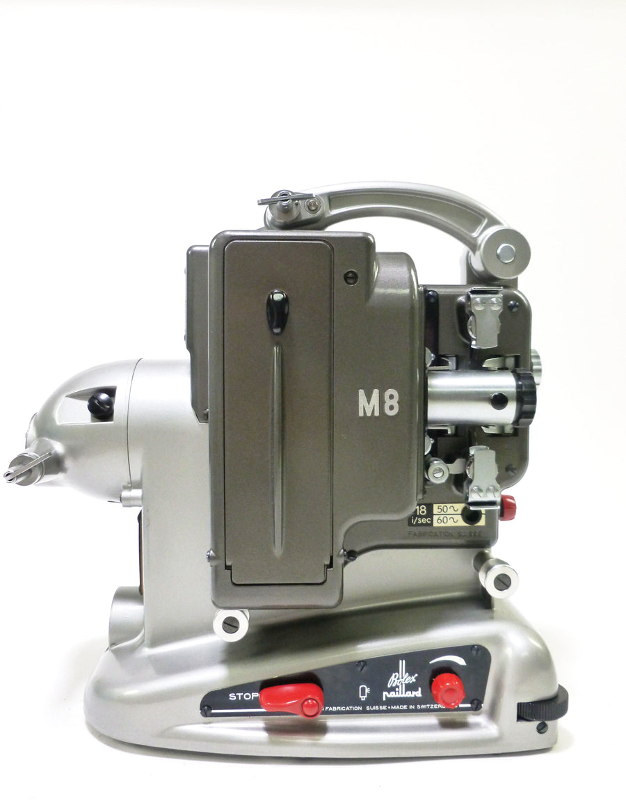 This Elmo ST-180E M 2-Track Sound Movie Projector is selling for parts only. It powers up and the lamp works, however it appears that the transport mechanism is not working....