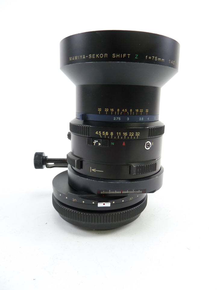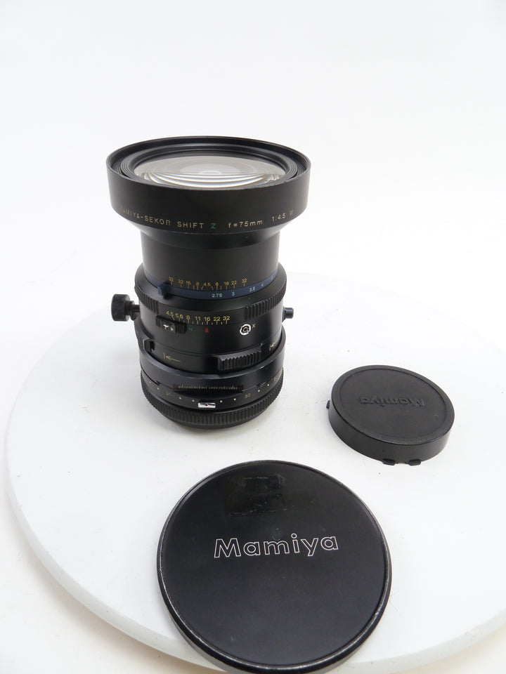 This is a Mamiya RZ67 Z 75MM F4.5 W Shift Lens. This lens works perfectly and shows normal wear. No Haze, No Fungus, and No Separation. Comes with both front...