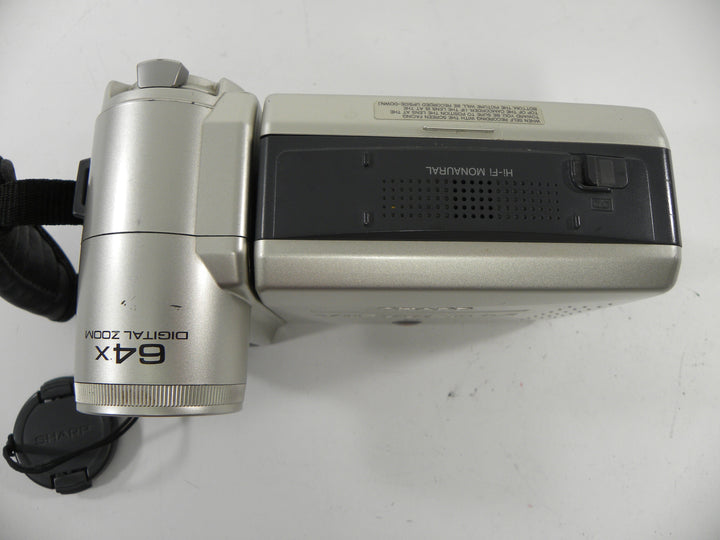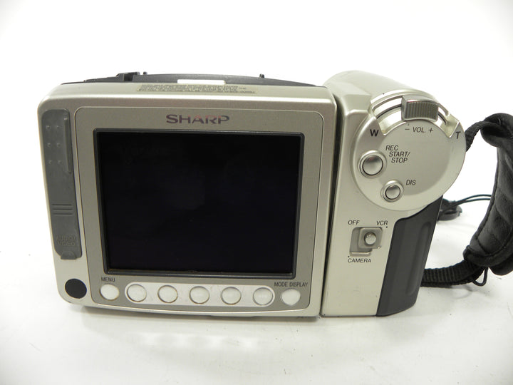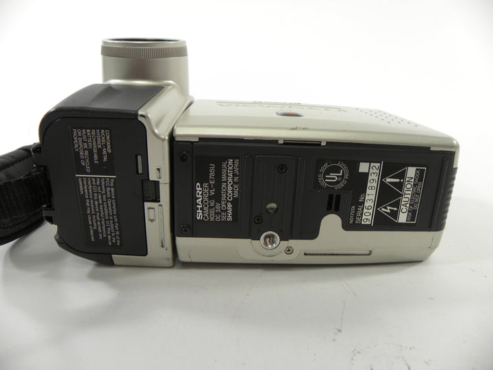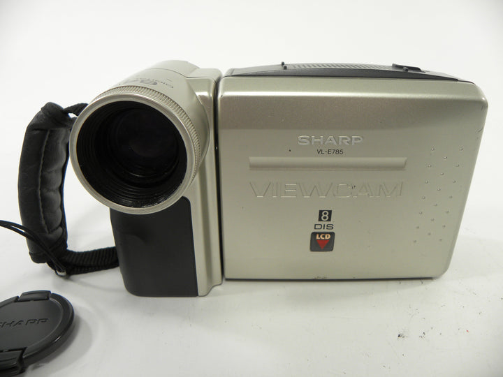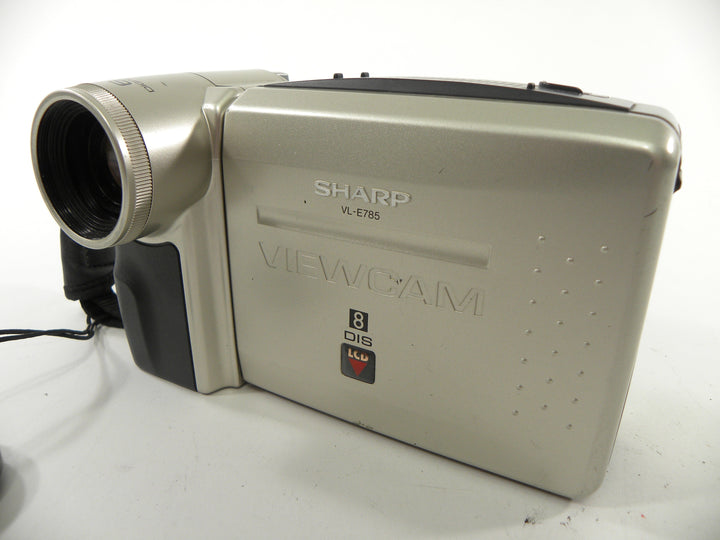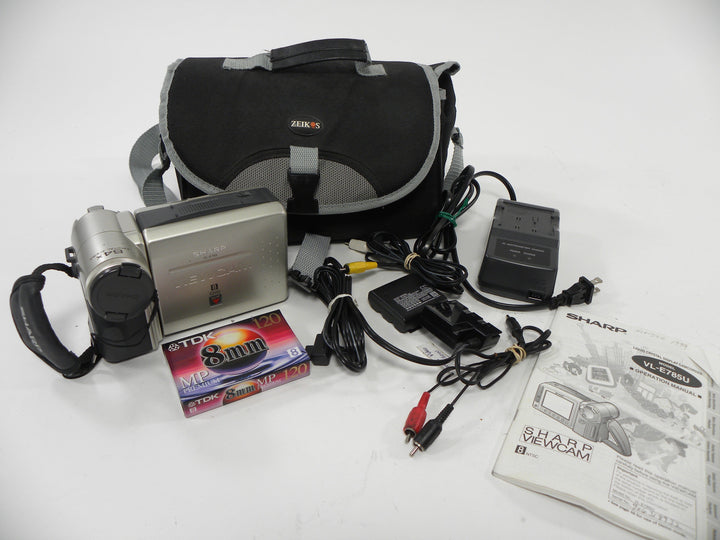 Sharp Viewcam VL-E785 8mm Camcorder has been tested and is in excellent working order. It comes with a battery, charger, AC Adapter, AV cords, user manual, remote, new 8mm tape and a case to put it all in. Minor wear marks, but overall in great condition. Please note that the included battery is used and its performance cannot be guaranteed.