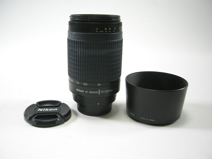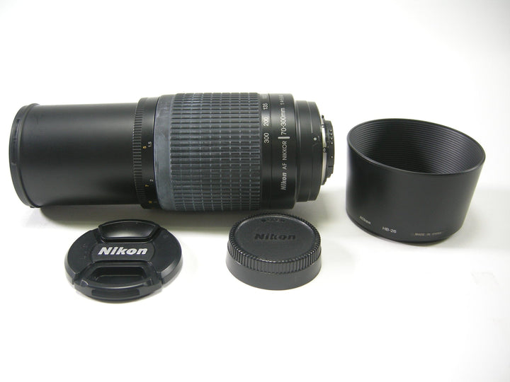 Nikon AF Nikkor 70-300 f4-5.6G lens has been checked and is in Excellent working condition, comes in a lens pouch with both OEM lens caps and OEM lens hood.