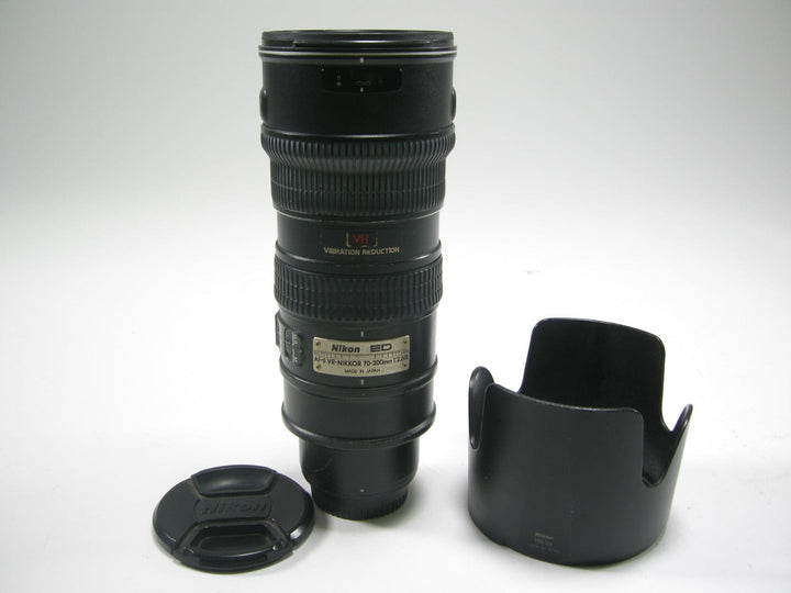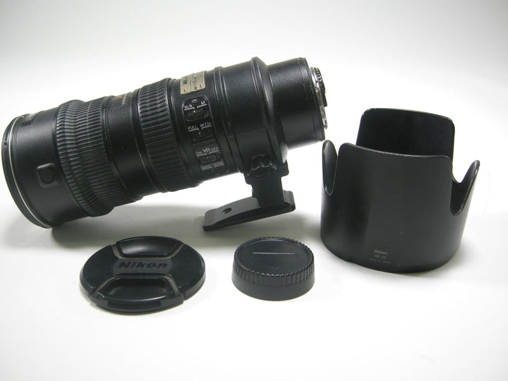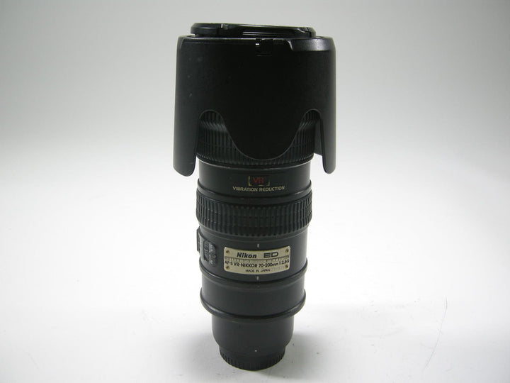 Nikon AF-S Nikkor ED VR IF 70-200mm f2.8G lens has been checked and is has a loose grip, fuzz inside element and the hood lock is broken lens is still good but sold (AS IS) comes with both OEM lens caps and OEM lens hood.