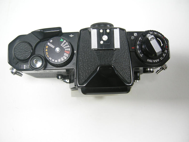 Nikon FE2 35mm SLR camera body only (Parts or Repair) AS IS! NO RETURNS!! has three dents on camera, no meter, foam in prism, won't turn on.