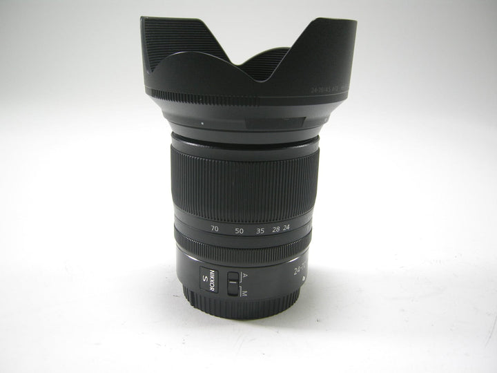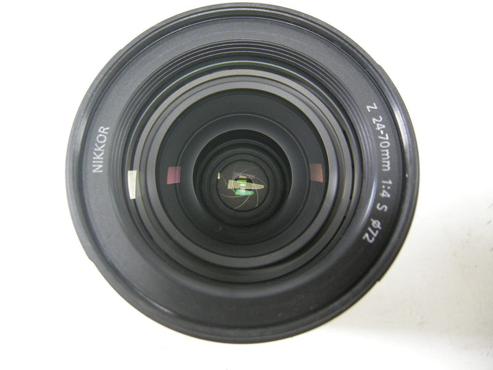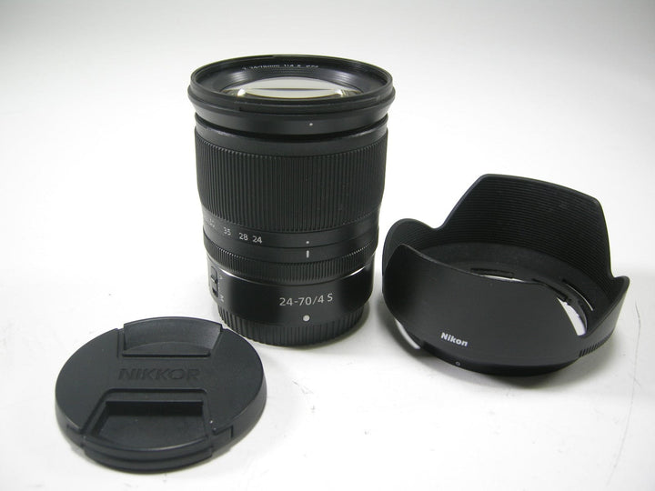 Nikon Z 24-70mm f4 S lens is in Excellent Working Condition, comes with both OEM lens caps and OEM lens hood.