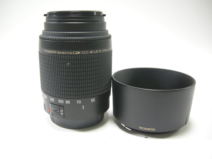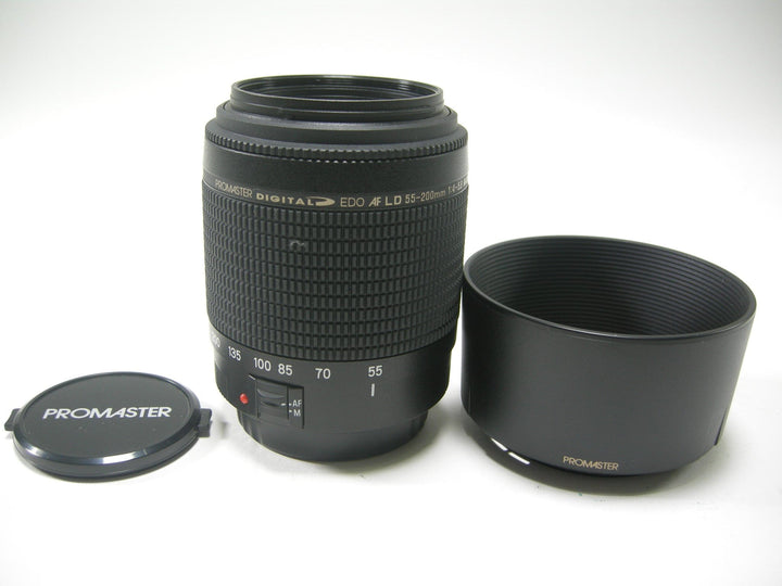 Promaster Digital EDO AP LD Macro 55-200mm f4-5.6 lens Canon EF Mt. is in Excellent Working Condition, comes with both OEM lens caps and OEM lens Hood.  Optics are clean of...