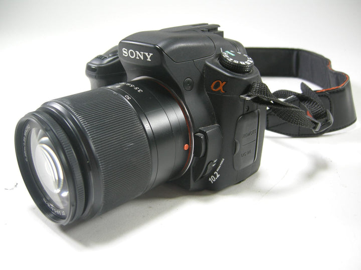 Sony a200 10.2mp Digital SLR camera with a 18-70mm f3.5-5.6 lens has been tested and is in excellent working condition, comes with a battery, charger, USB cord, and lens cap.