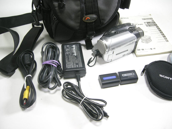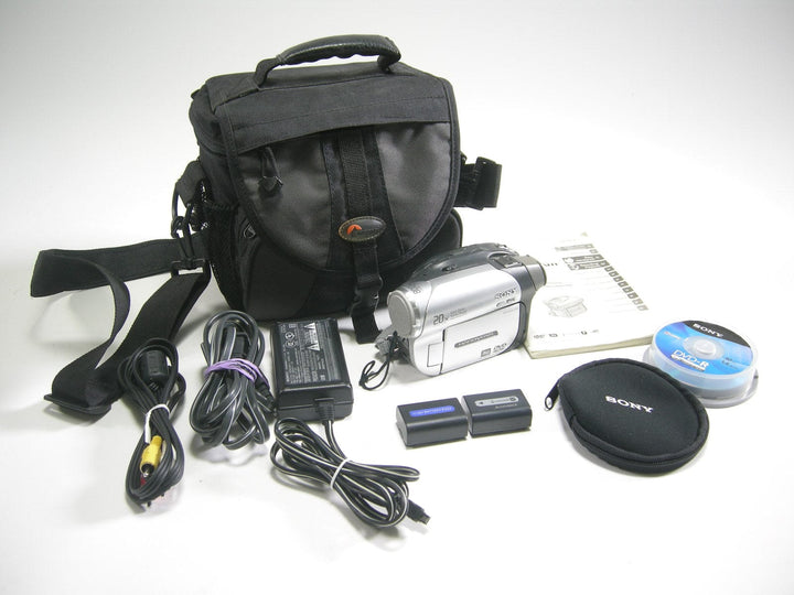 Sony DCR-DVD92 R/RW DVD Camcorder has been tested and is in excellent working condition, battery was charged long enough to teste camera, comes in a Lowepro case with a manual, 2 batteries, AC Adapter, 6 blank DVD's, AV cord, and Disc Holders.