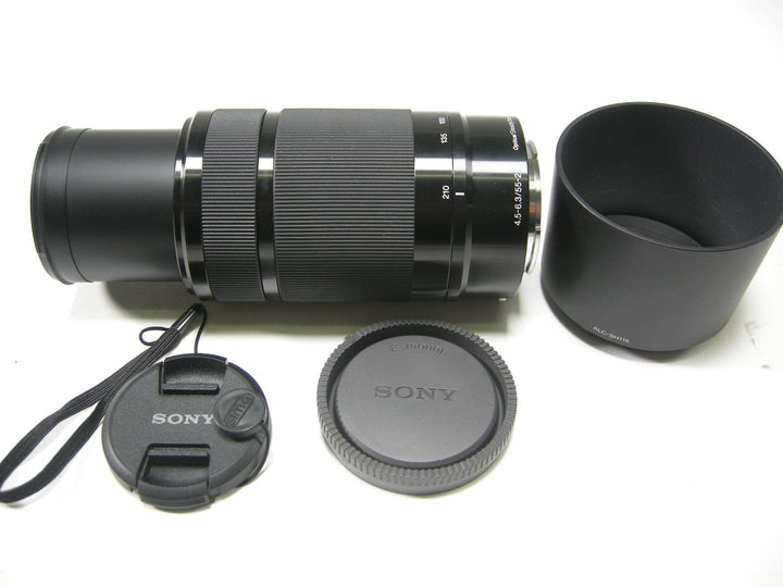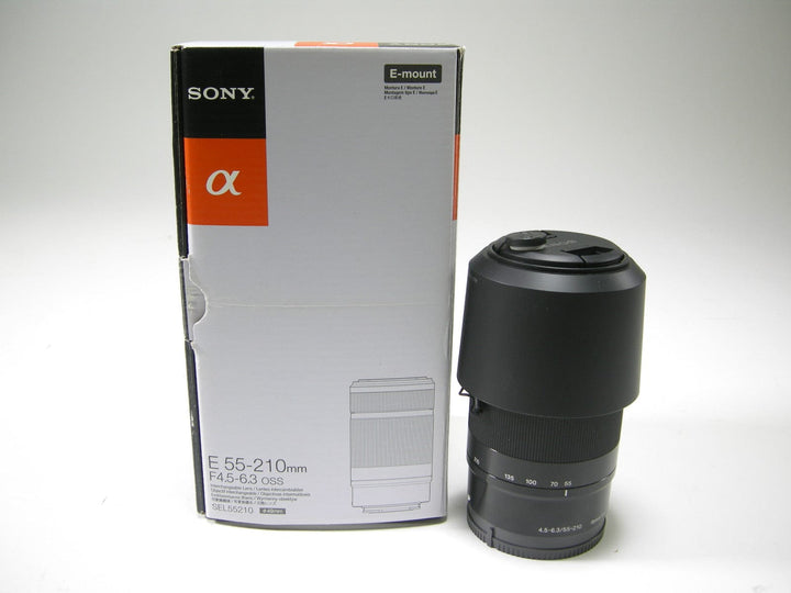 Sony E-Mt. 55-210mm f4.5-6.3 OSS lens has been checked and is in Excellent working condition, comes in its original box with both OEM lens caps and OEM lens hood.