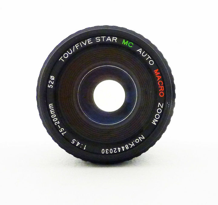 This is a Tou/Five Star MC Auto Macro 75-200mm f4.5 for Canon FD Mount This lens is in excellent condition and shows normal signs of use. Optics are clean of any scratches, fungus,...